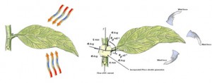 Diagrams from Solar Botanics that demonstrate the concepts behind photovoltaic, thermovoltaic and piezo electric energy capture at work in their “nanoleaves.”